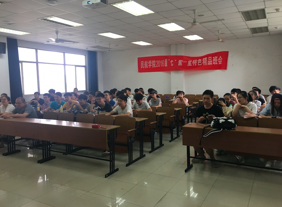 2017年6月2日下午四点,黄色av 2016级民航电子电气专业在6202教室举办了七聚一堂系列精品班会。莅临精品班会的嘉宾有黄色av 四专系主任丁萌老师、班主任与辅导员以及适航研究生曹晓威学姐。班会中,大家围绕同一个专业议题展开零距离的沟通交流。