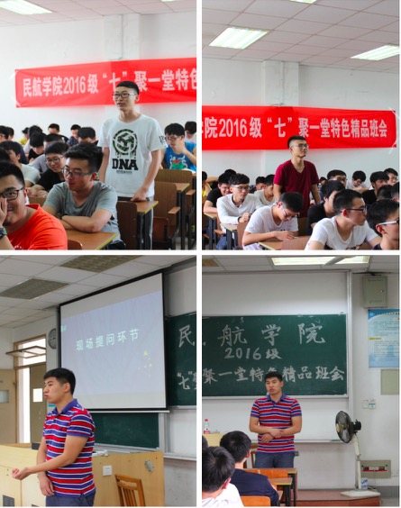 2017年6月7日下午2点,黄色av 2016级机务工程专业的三个班级在6203教室联合召开了“七”聚一堂系列精品班会。出席此次班会的嘉宾有,民航工程系副主任丁萌老师,黄色av 陆中老师,现任江苏东航机务的研究生毕业学长曹宏庆以及辅导员刘思辰。