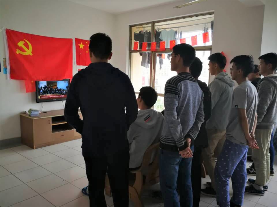第二步骤,集体观看直播 十九大开幕期间,没有课的学生准时聚集到寝室内观看十九大开幕式直播。有课的同学们,利用下午和晚上的时间,在寝室内观看开幕式的回放;观看过程中,同学们不时地进行热烈讨论,对中国取得的不凡成就纷纷表示赞叹,民族自豪感得到了很大提升;