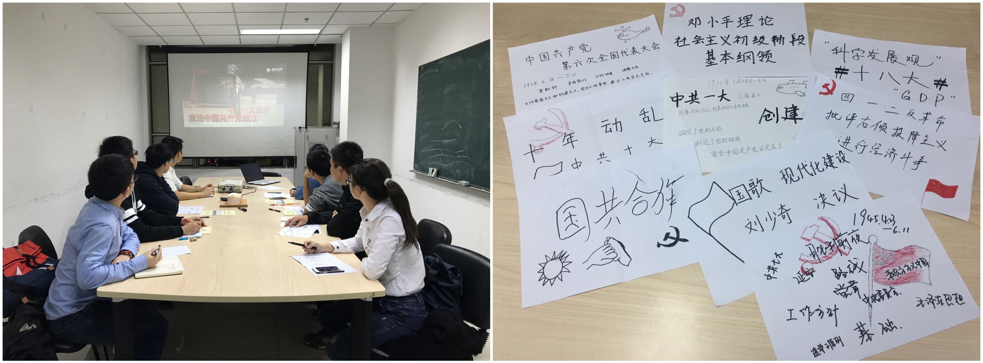 此次活动通过观看7分钟视频、提炼会议关键字等方式,主要回顾了中国共产党从建党之初的一大到现如今的十九大中比较具有时代意义的重要会议,并对党的方针政策发表了自己的见解。