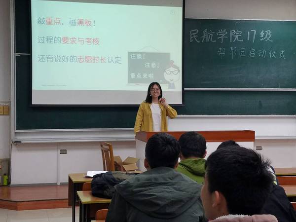之后,朱岚导员又和大家更加详细地讲解了“帮帮团”的举办目的,为了给学习好的同学和学习有困难的同学都提供一个学习和交流的平台,希望大家不仅仅是在一起自习,更多的是营造一个良好的学习氛围。另外朱岚导员又向大家介绍了“帮帮团”的第二个项目考前辅导,希望更有能力的同学能够为整个年级的同学讲解学习方法和解题技巧。