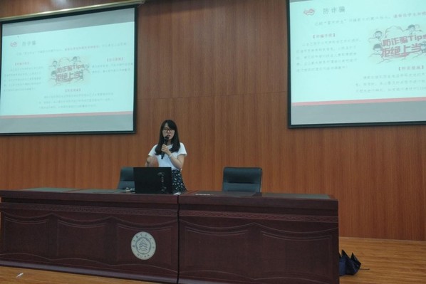 大会的第三板块,朱老师就暑期实践、留校安全、防诈骗安全等相关注意事项进行了说明,提醒同学们加强防火、防盗、防诈骗、防传销、防人身侵害、防交通事故等方面的安全意识,为学年的顺利结束打下坚实基础。此外,朱老师公布了关于下一学年新生学导的招募要求,鼓励符合要求的同学们积极报名。