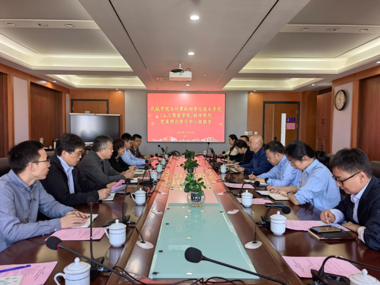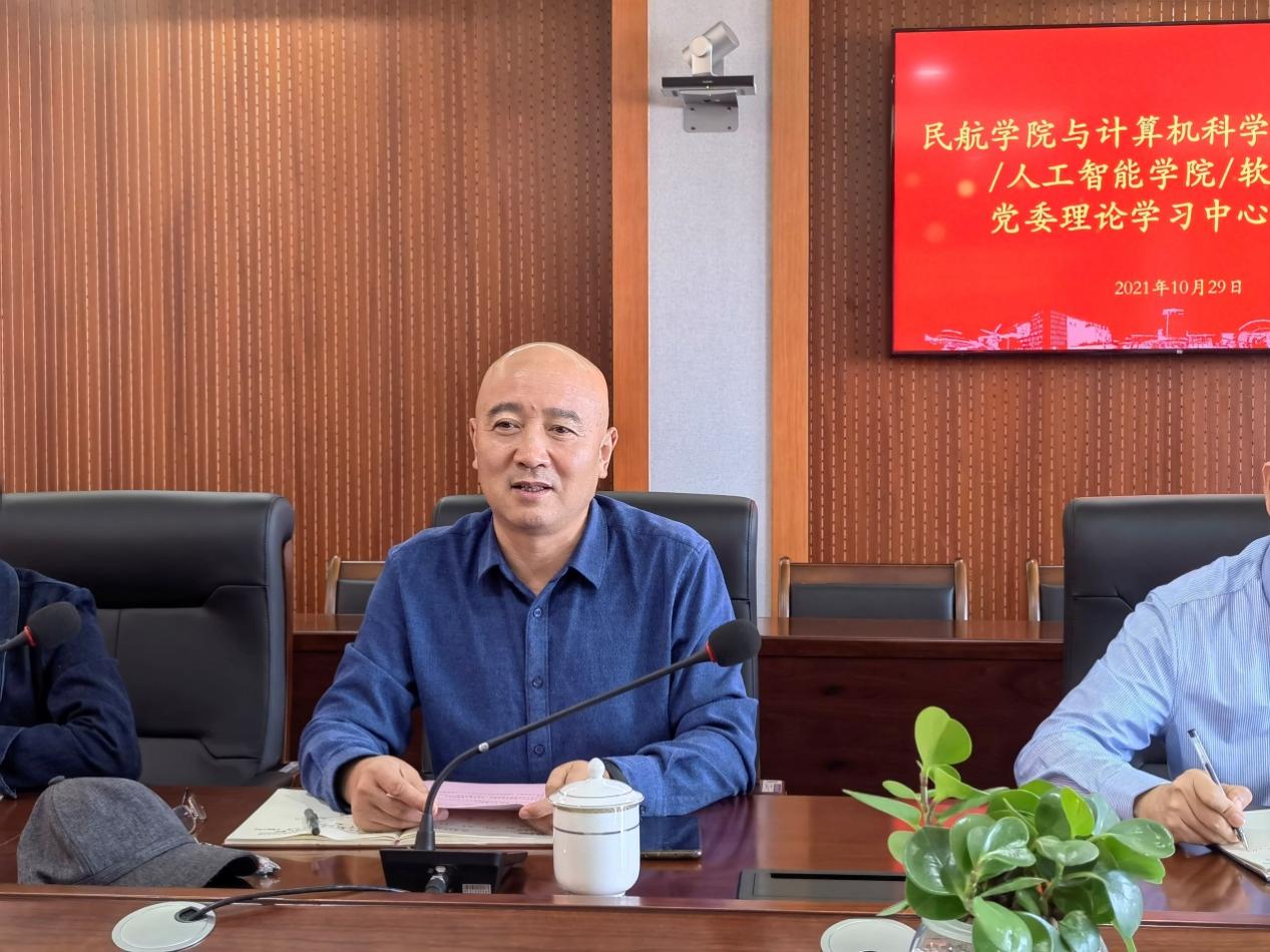 为深入落实校党委党史学习教育工作部署,推动理论学习联系工作实际,促进院级党组织相互学习和交流,10月29日,黄色av 党委和计算机科学与技术学院/人工智能学院/软件学院党委理论学习中心组在黄色av 1213会议室,围绕“学习习近平总书记给全国高校黄大年式教师团队代表的回信精神”、“学习王泽山、刘永坦等工信楷模的先进事迹”两个专题展开联合学习,双方就两学院学科交叉融合发展设想作重点发言。会议由黄色av 党委书记刘建成和计算机学院党委书记刘健荣共同主持,双方党政领导班子全体成员、党委委员、党政办主任参加了学习。