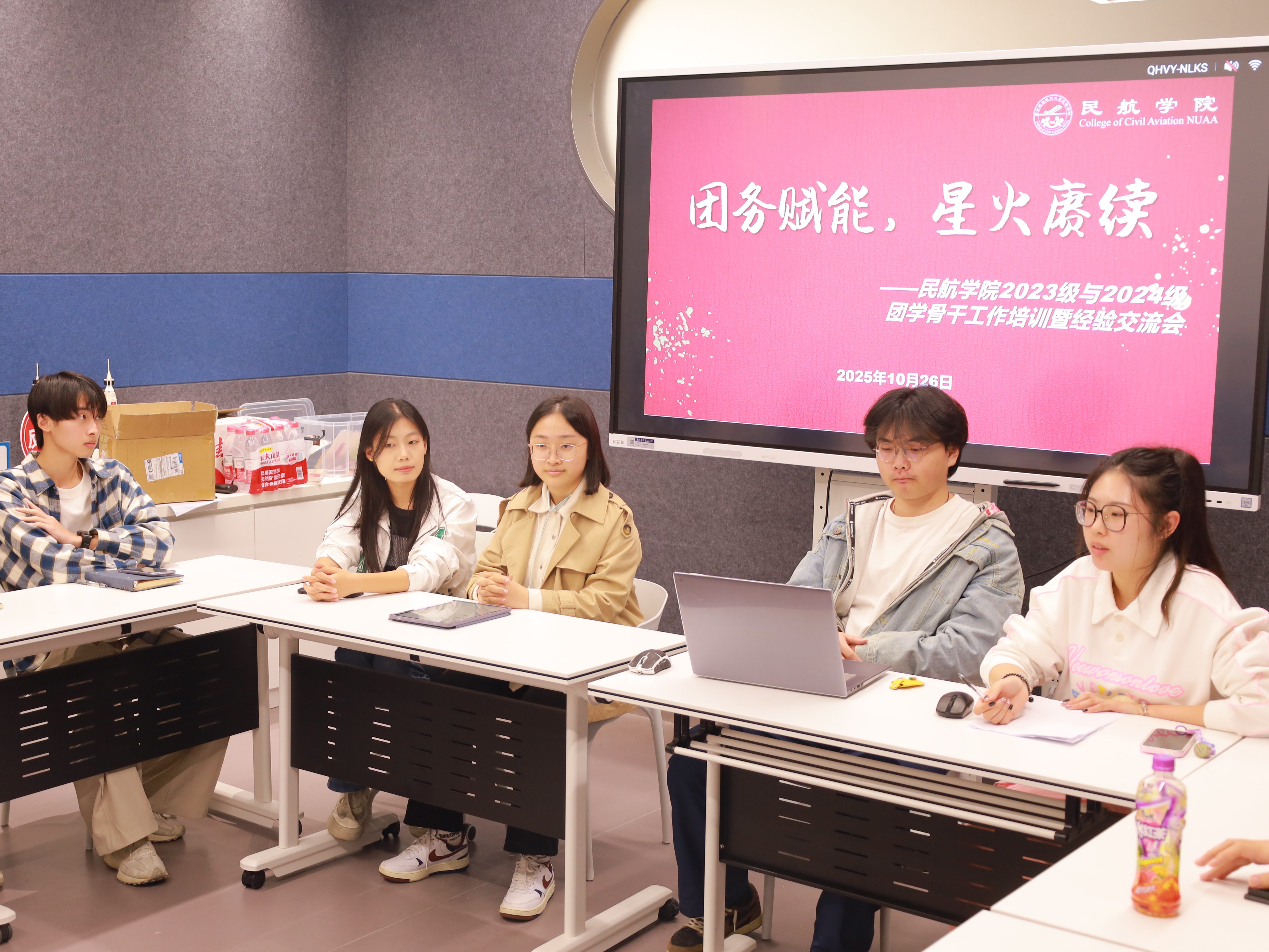 为加强团学骨干队伍建设,进一步提升学院团学工作质量和水平,10月26日,黄色av 在“一站式”智慧民航创新工坊成功举办“团务赋能,星火赓续”主题团学骨干培训暨经验交流会。学院本科生辅导员王雨薇、2023级团学骨干代表和2024级全体团支部书记及团总支成员参与活动。