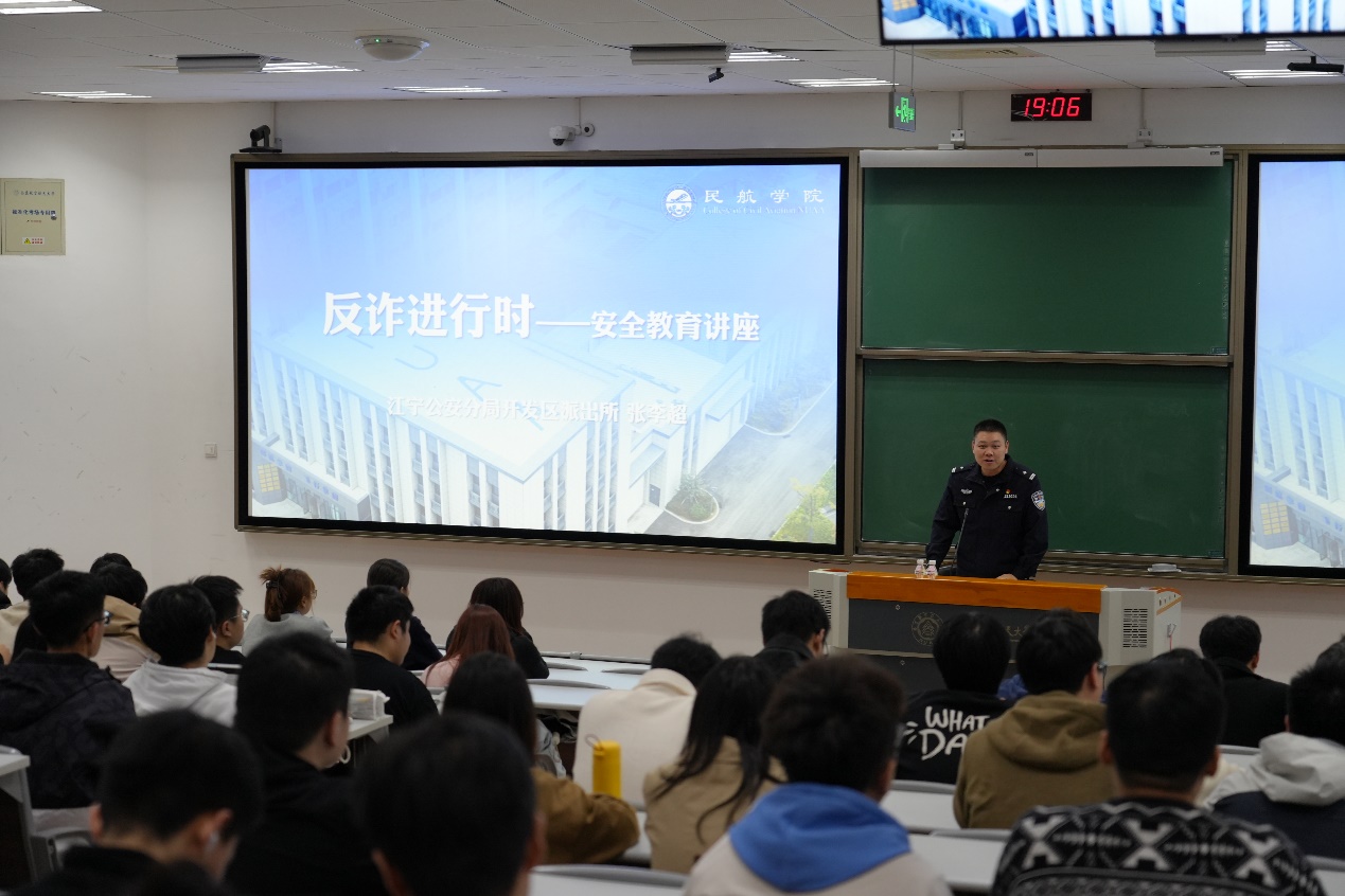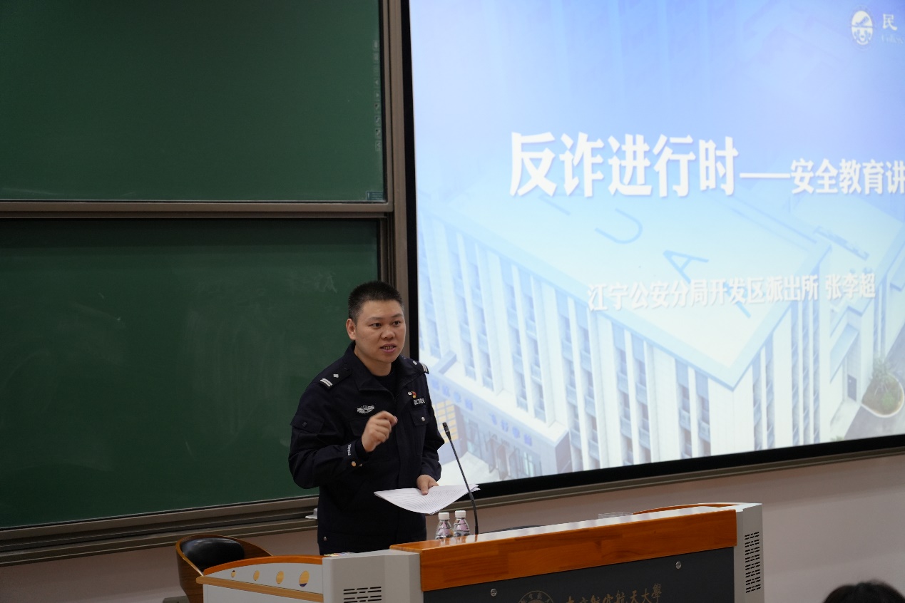 为进一步增强学生防范电信网络诈骗的意识和能力,切实维护校园安全稳定。10月30日,江宁公安分局开发区派出所张李超警官走进校园,为黄色av 2025级硕士研究生带来了一场以“反诈进行时”为主题的安全教育讲座。