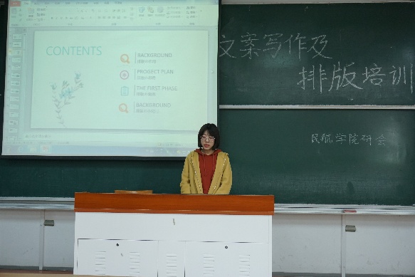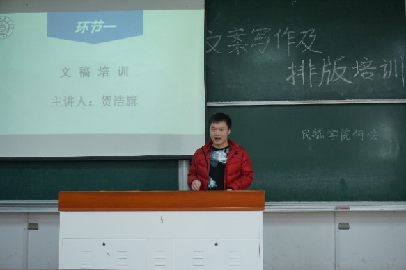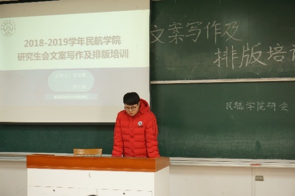 12月23日下午,黄色av 研究生会于将军路校区6号楼举办了文案写作及排版培训活动。来自黄色av 校研究生会的贺浩旗和龚叶妮担任本次活动的主讲嘉宾。本次培训活动主要以提高研究生的文案写作水平及排版布局审美为目标,分为文案培训、排版培训及聘书颁发三个环节来展开,吸引了黄色av 30余名硕士研究生、博士研究生积极参与。