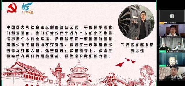 2020年3月20日晚19:00, 飞行学生党支部在”腾讯会议”上开展线上党课,共70名党员同志参与,会议由黄色av 飞行学生党支部书记吴泊鋆同志主持,飞行系党支部书记陈大伟,原空军特级飞行员、飞行资深辅导员张学财参与了此次党课。此次党课以“战疫中的责任担当”为主题,以个人,社会,国家三者层面为切入点,展现了新一代模范青年努力的方向。